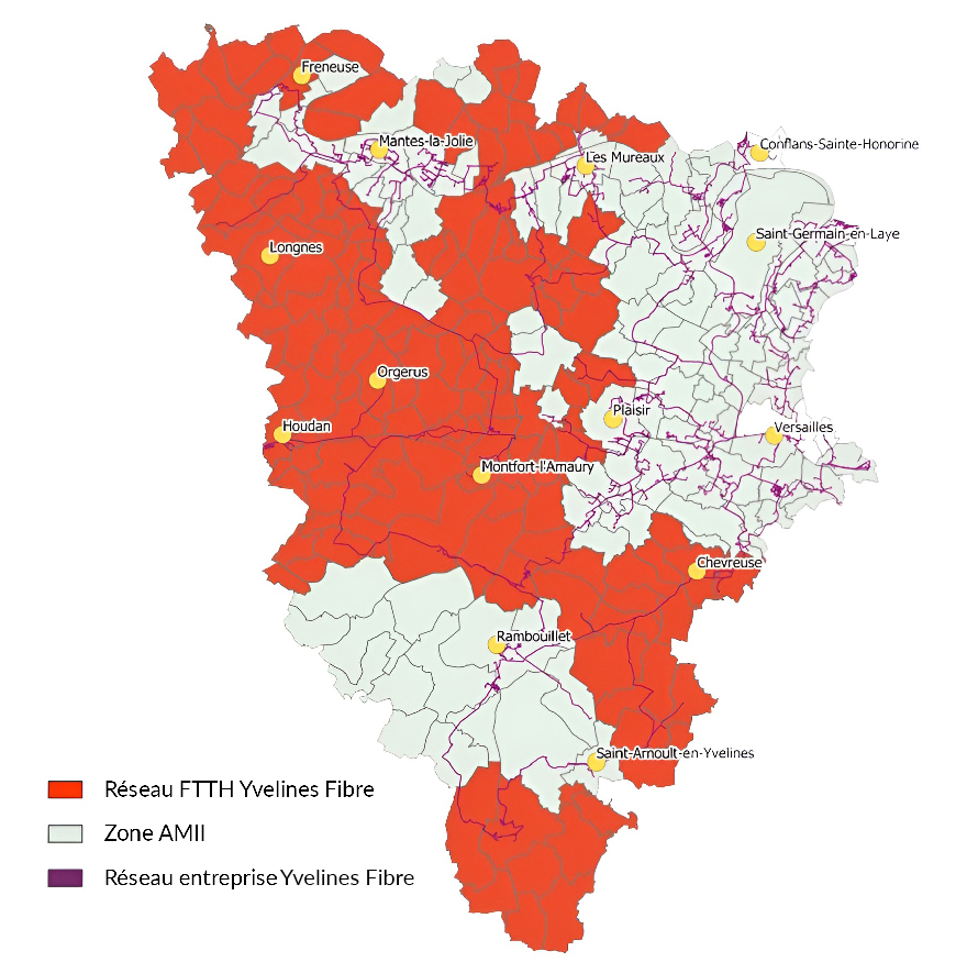 Le réseau Yvelines Fibre est présent sur l’ensemble du territoire des Yvelines. Gage de qualité, le département s’appuie sur ce réseau pour raccorder les sites publics communaux, départementaux et régionaux et fournir des services à l’ensemble des collectivités